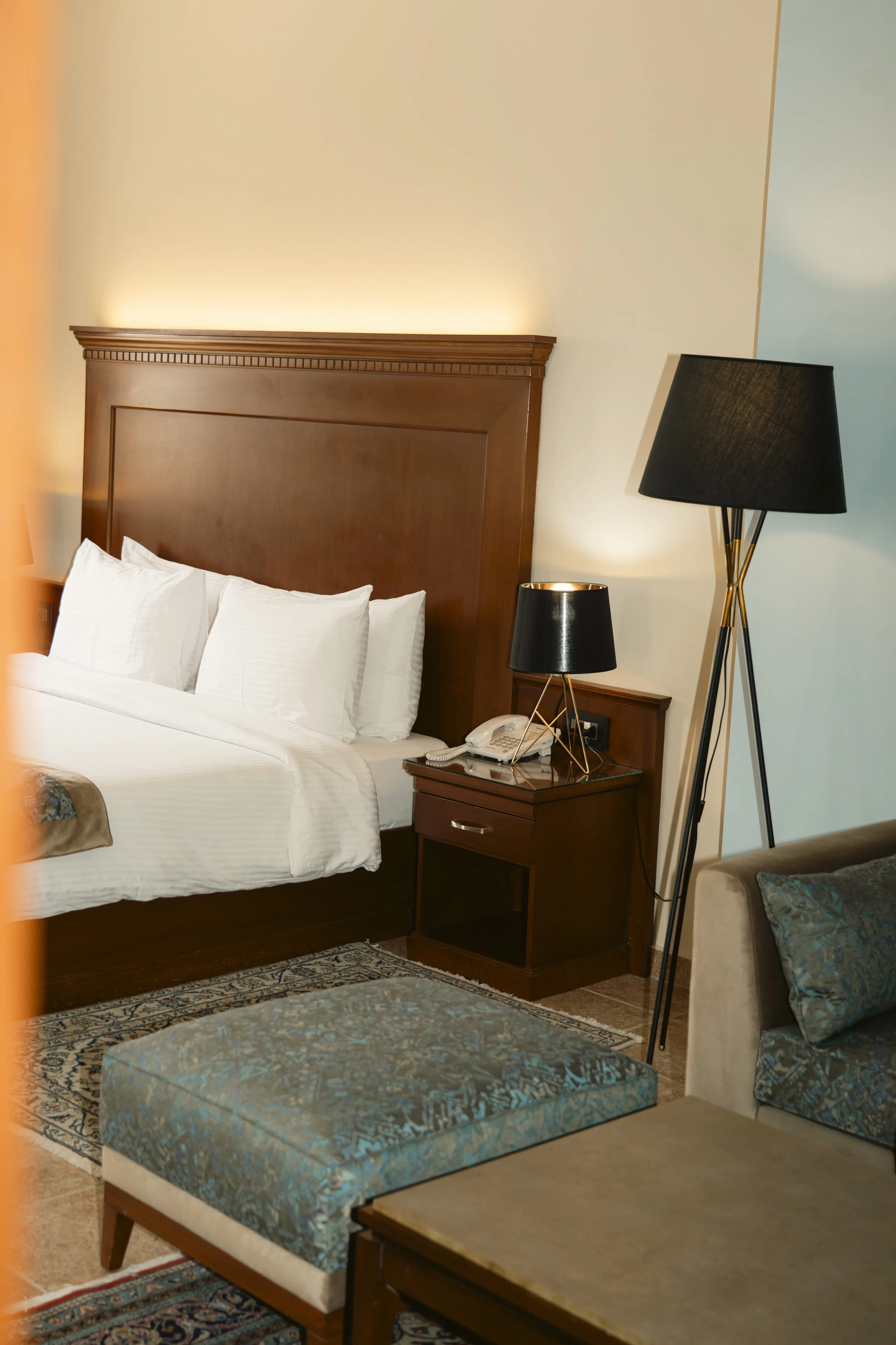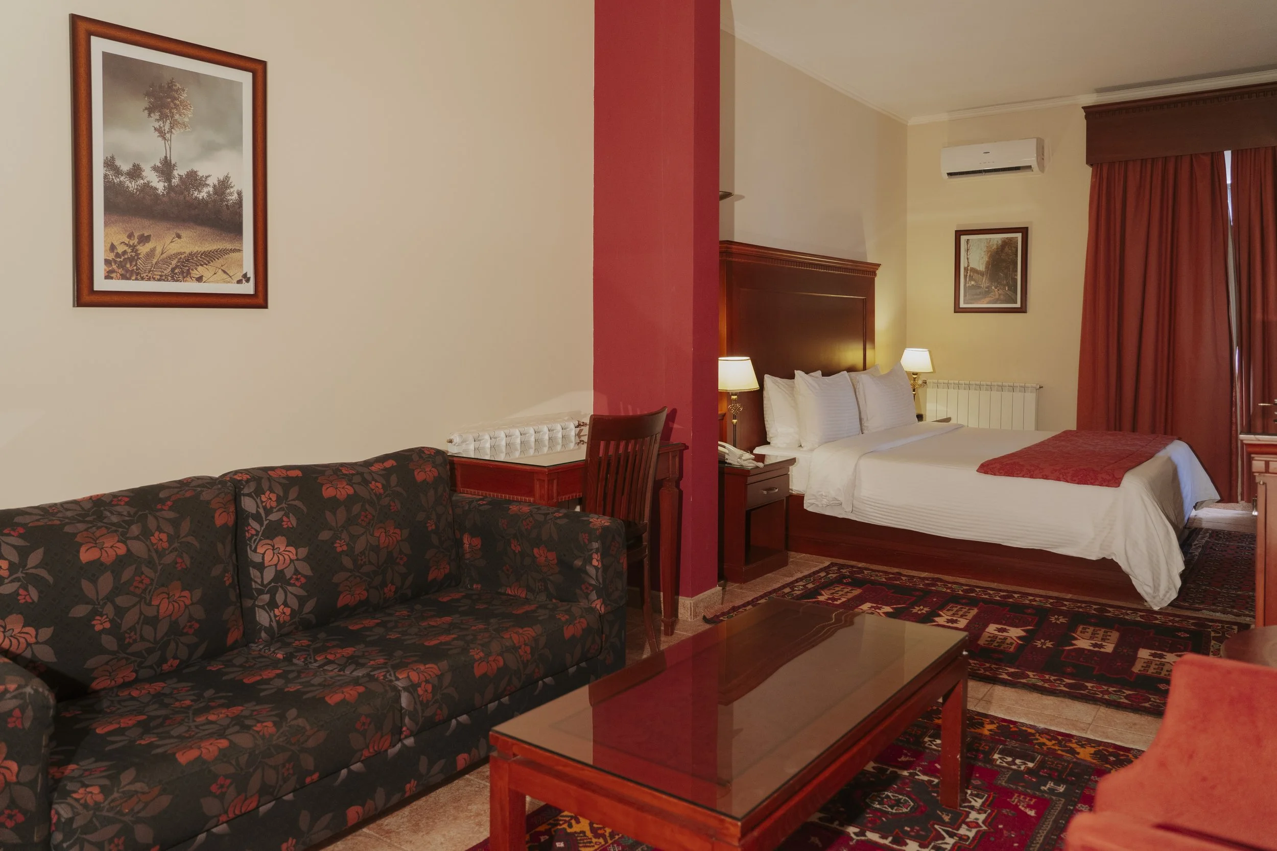 Indulge in luxury and comfort in our premium double room featuring a lavish California King bed. Unwind in the spacious sitting area, catch up on work at the desk, and refresh in the well-appointed bathroom.