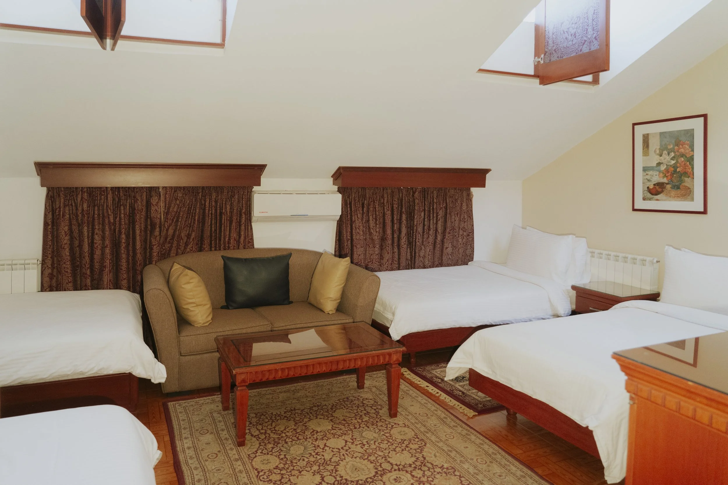 Step into our spacious and accommodating family room, thoughtfully designed to cater to your comfort and convenience. Whether you're traveling with family or friends, this room is an ideal choice, offering a comfortable and inviting space to unwind after a day of adventure or to simply relax during your stay.